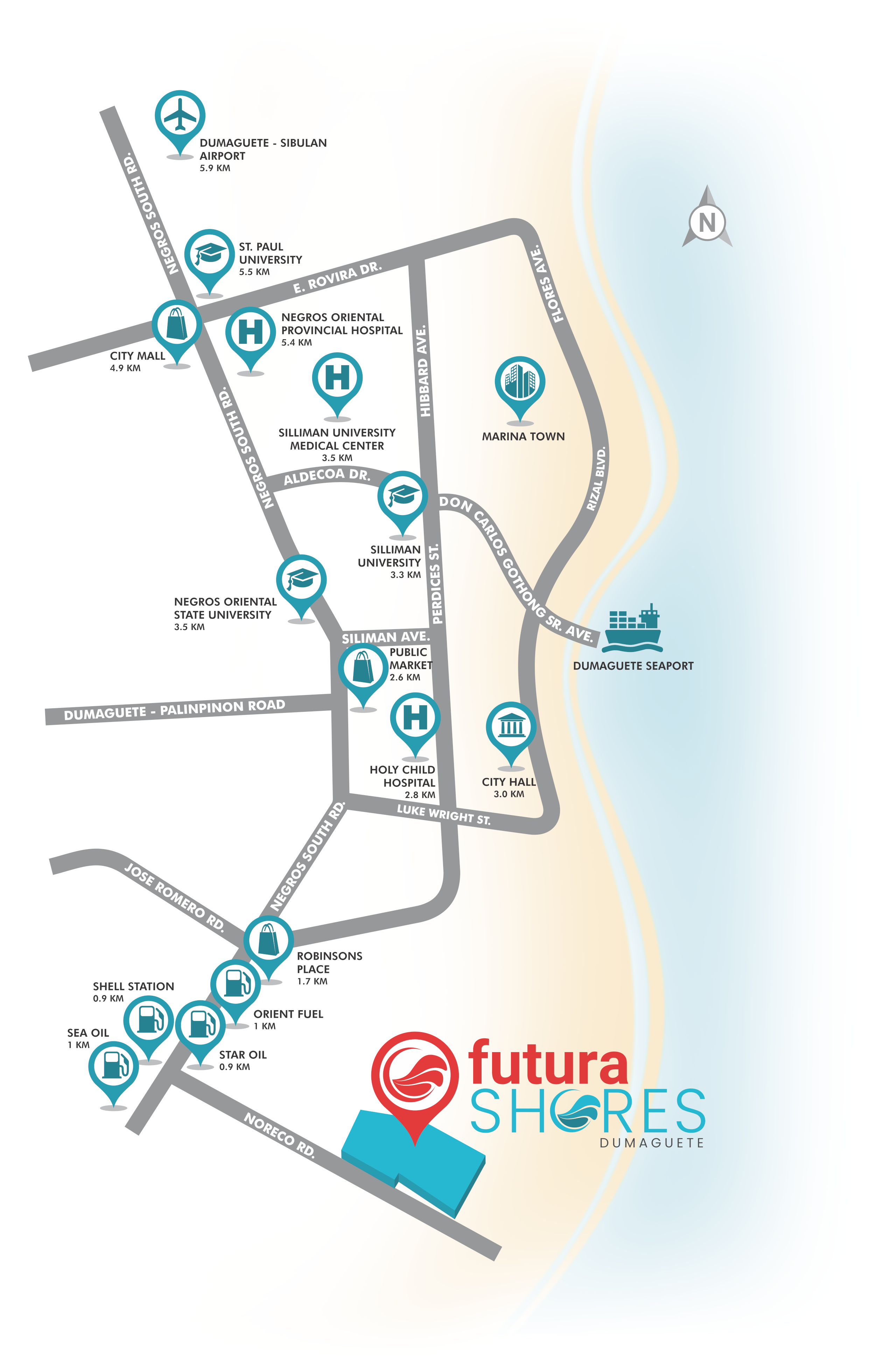 Futura Shores Dumaguete offers serene coastal living in a picturesque location while remaining conveniently close to daily essentials. Situated along Noreco Road, it’s just 800 meters from the accessible Negros South Road, connecting you to Dumaguete’s city hall, airport, major retails and commercial centers, schools, and hospitals.